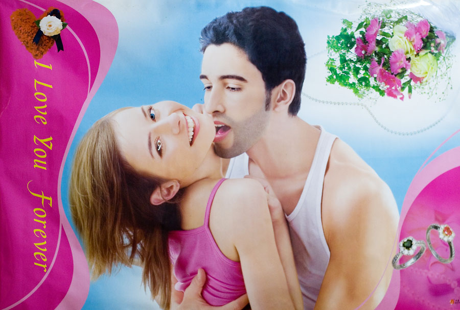 Wedding Couple Nha Nghi Poster in Room Flip Flop Peddler Alleys Garbage Collection Village Gate