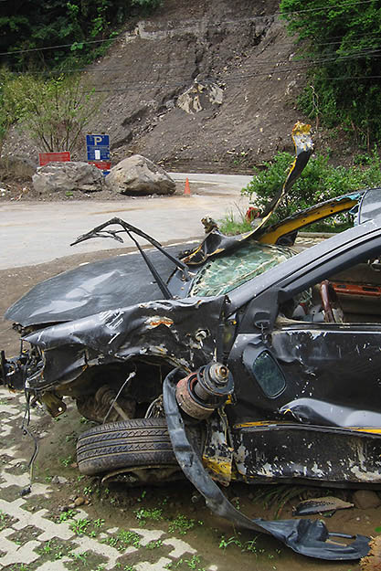 Beware of Falling Rocks Battered Railings River Hotspring Pillbox Washout Buried Crushed Ozymandias Soaring Nestled Town Natural Beauty